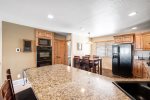 Gourmet Kitchen with granite countertops, double ovens, cookware, utensils, and a coffee maker